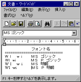 どの行も同じ文字”WI(全角スペース)wi”で、行毎にフォントを