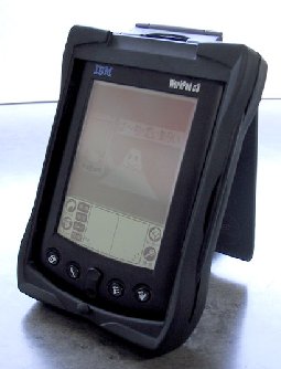 重さはあまり無いのですが、「ごつい」ケースです。 Palmの装着は力ではめ込むのですが、結構力が必要なので勇気が必要です。 30Jは「パキッ」と音がしてました。(笑) 外すときは底を押して「グッ」と外します。 スタイラス用の溝はありますが、本体がゴム製の為、脱着が以外に面倒です。 私は予備として純正スタイラスを装着し、別にスタイラスを用意してます。 c3の場合、bomb_1.jpgで書いた通り電源SWが押せなくなるので、電源オフをDA等ソフトで行う必要があります。 このケースに「アメリカ」を感じるのは私だけでしょうか? ゴムの厚みがかなりあるので落下には強いです。 完全に左右対称ですし、フタも上に開くタイプなので利き手も選びません。 当然(?)ベルクロも必要ありません。 Spetial Thanks to いのうえさん&マサ村上さん 【fuji】 writeRIGHTのConcept Kitchenから発売された、耐久性抜群のケース ですね。ゴムという素材を使っているのが面白いです。 実売は\4,500位(2000/10現在)です。かさばっても良いと言う条件付きで無茶苦茶ハードに扱っている方にお薦めでしょうか? って言っても「ごっつい」ですが・・・(^^) |
