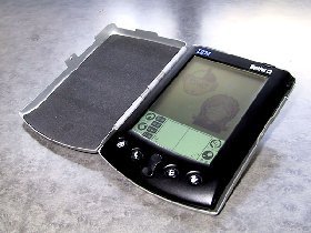 100%アルミの「さいばぁ」なケースです。 アルミなので軽く、厚みも薄いのでジーンズのポケットでもOKです。 ただ本体をジャストサイズで覆うのでスタイラスは選びます。 ・純正スタイラス ・「Palm V Custom Deluxe Stylus(PDA Panache)」 以外は無理かな? c3やPalmVのスタイルを崩さずに保護するには最適なケースと思います。 フォーマルでもカジュアルでもOKですね。 このケースの「チタン製」もあるそうです。 Spetial Thanks to いのうえさん&マサ村上さん 【fuji】 このケースは質感やゼロハリを思わせるフォルムの美しさが最大の魅力です。やっぱり「Palm V Custom Deluxe Stylus(PDA Panache)」とのコンビネーションが最高にサイバチックに演出しますね。<死語?(^^; ただ、アルミの特性上、指紋のあとが黒く変色してくるそうです。しかし、このサビが次第に乳白色の薄い被膜となってアルミを保護するようになるようで、1日経った後は、ゼロハリのケースのような白っぽい銀の色合いになって、落ち着いてくるらしいのです。