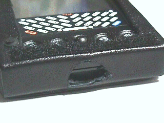 縦開きのケースで上部からスッポリ入れ、液晶部とボタン部が空いています。|