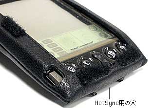 本体下部にはHotSync用の穴が開いています。ケースをつけたままでクレイドルに乗せてのHot