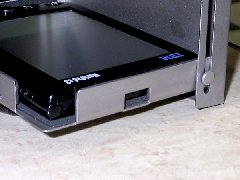 角度を変えて。開閉はスライド式(?)です。 名前が「スライダー」ですから(笑)。 開いたフタが裏側にスライドします。