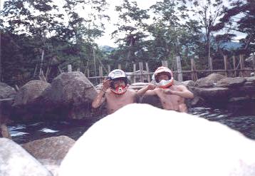 露天風呂でメットかぶって一緒に馬鹿やって