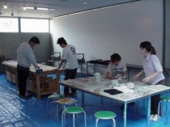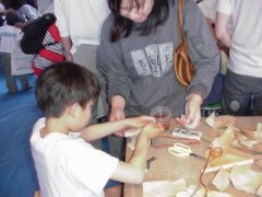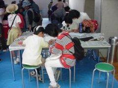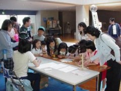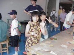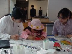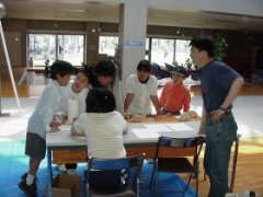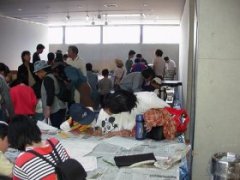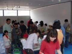 子どもたちは,みんな真剣。ボランティアの岡山大学の学生さん達も大忙しでした。テレビ局の取材もありました。 |