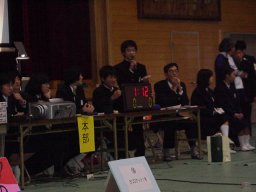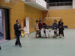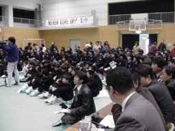 | 屋根に太陽電池パネルのついた新しい体育館で,すばらしい雰囲気の中,盛大に行われました。 | ||