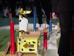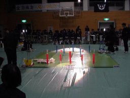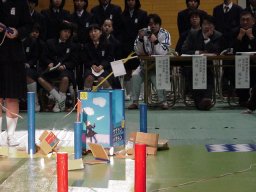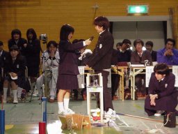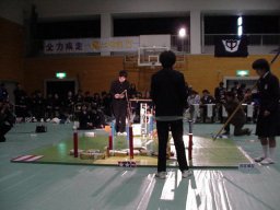 動かないマシンが一台もないというハイレベルな戦いでした。生徒の実況中継が会場を和ませ,かつ盛り上げました。 最初の写真,デジタルタイマーの右が鈴木先生。最後の写真は決勝前のインタビューの様子。 |
