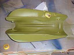 ![]() | 同じく、全体的にジンククロメート・プライマーを塗装しました。 始めはパテの後があったりしてきたないですが、2度3度と重ね塗りしていくとだんだんと塗装がのってきます。自分は3度まで塗りました。缶スプレーで塗る時のペイントスピードは人が歩くくらいの速さです。忘れてましたが、マスキングは忘れずに。 |