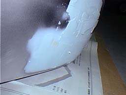 ![]() | サイドカウルは割れていたのでFRP修理材で処置します。2液性のFRP補修キットで、ガラスクロスを一枚はって、乾燥したらペーパーで削って、面をだしたいです。ちなみにまだしていません。 |