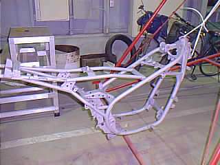 ![]() | 新品ぴかぴかの状態になりました。すべてのいまいましい錆びや泥がとれ、目茶苦茶きれいになりました。ほとんど新品です。 でも、ブラストで脱脂した表面は錆び易くてそのままちょっとの間でも放置したら錆びが浮かんできます。 本当にきれいです。「このまま永久保存にできたらいいなー」なんて思っちゃいます。 やっぱりフレームは鉄パイプのフレームがきれいですね。これで酒が飲めそうっす。 |