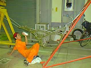 ![]() | ある程度まではRDのレストアページを見てください。 今回、がんばったのはやっぱり最終仕上げです。ジンク・クロメート・プライマーは緑いろなので、そこからパールホワイトの色を出すのは大変です。(パールは缶ペイントなので、お金がたりない・・) 普通の白をまず、むらなく塗り、そこから、缶ペイントのパールホワイトを塗りました。最初はたれるくらい塗りますが、そのうち、スプレーを遠ざけてやや表面がざらざらするくらい薄くぬります。 なぜなら・・・・・パールは重いので、下に沈んでしまいます。(ともきちはやっちゃった) しずまないようにうすく吹いてやるとあのパールがきれいにでます。 缶ペイントはアクリルで結構早く乾くため、青色の塗装に入るのが短時間で楽でした。 マスキングテープをカンで目張りして、大体の形を作ってよかったら、ペイントに入ります。深青と水色はウレタン塗料なので結構楽にぬれます。(なかなかたれない) でも、欠点もあります。硬化剤をいれるので、硬化するまで、時間がかかるということです。(約40時間) あと、写真はないですが、サイドカウル(RZRの物は左側にクラックが入り易い)も補修しました。 今回の自分の修理のコンセプトは「無料」なので(笑)ABS樹脂用の接着剤とアクリルの粉末(今回は飛行機の廃棄した窓を削った粉)を用いて補修しました。結構うまくできました。 |