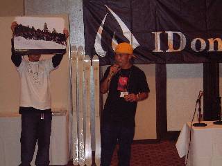 | 9月7日にスキー店で入手した貴重な情報とは何かというと、今日開催されたとあるスキーメーカーのパーティに参加できるというもの。ゲストは上村愛子(!)を筆頭に岩渕隆二(モーグルスキーヤーでW杯3位になったことがある。このメーカーの板の開発者)、スティーブン(日本モーグルチームコーチ)他。参加者50〜70人限定で、近くで話もできるということで勇んで出席。 開催時間よりだいぶ早めに会場に着いたのだが、受付にはスキーメーカーの社長と岩渕隆二が!すげー、本物だ!いきなりテンションがあがる。受付を済ませ、開場になるまで、群馬から来たという参加者といろいろ話をして盛り上がる。開場になってしばらくすると、ふらっと女性が一人会場へ入ってきた。わー、上村愛子だ!ちいさいー、ほそいー、かわいー、本物だー、とミーハーになってしまった。そこに社長が登場。「アイコ、ウォーミングアップしよか?」というと何をするのかと思えば、いきなり2ショット写真撮影会。うれしい企画! そうこうするうちに開始時間になり乾杯からスタート!最初は質問タイム。どうも東京人はおとなしいらしく質問がでない。仕方なく、自分がくだらない質問を「アイコモデルの色を考えたのは誰ですか?」なぜか社長は「誰だ?」と言っているうちに岩渕隆二が「すいません。僕の独断で決めました。でもアイコの許可は取ってますよ。」と白状。ちょっと地味かと思ったのだけど。次の人は「モーグルのルール改正でヘルメットが着用になりますけど?」アイコは「考えたくないから考えてません。モーグルにヘルメットはちょっと...」という回答。岩渕隆二は「そんな話あるの?」と驚いていた。おいおい... で、次は歓談へ。最初はさすがに上村愛子はメーカーの人達に囲まれていたため話ができず同じ参加者の人達と談笑。そこで社長が「もっとこっちに来て話をしたら」というので、ダッシュで上村愛子のところへ。ビールを注いであげたり、ウーロン茶を注いでもらったりしながら少しお話し...上村愛子は酒に強く、特にとことん飲むと決めたら...だそうだ。恐ろしい... 上村愛子せっかく話を始めたと思ったら、サイン会に突入。とりあえず、帽子と雑誌にサインを戴いて、握手をした。上村愛子の手は驚くほど冷たい。その後、岩渕隆二にも帽子にサインをもらった。いやー、岩渕隆二はいいなぁ。話はおもしろいし、サインは一人一人違う言葉を書くし(常に酔いがテーマなのは笑うが、これも遊び心か)。サインや写真をお願いしても気持ちよく応じてくれるし。 i 岩渕隆二後半に突入する前に社長から中間の挨拶。昨日報道された全日本のモーグルスキーヤーが大麻で逮捕された件や、映画を作ろうとしている件。前件では会場が静まり返って社長の話に聞き入り、一転次の話では会場が盛り上がった。次に抽選会。強運を発揮し、「RAKUWAブレス」をGET! 後半は、さらに大胆に色々な人に声をかけてみた。例えば渡辺智宏さん。この人は雑誌「bravoski」等のカメラマンをしている人で、フリーライドの写真を主に手がけている。最新号の「bravoski」ではこの人がエアトリックの撮影についてコラムも書いており、印象に残っていたので思わず声をかけてしまった。「偉いのはライダーだよ。僕は彼らが飛んできたときにシャッターを押しているだけ」と謙遜していたが、もっともトリックがかっこいいアングルで、かつ背景を含めた全体としての完成度の高さとかは凄いと思っている。彼だけでなく、「skier」「ski graphic」「ブルーガイドスキー」等あらゆるスキー雑誌の編集者や編集長も来て、にぎやかだった。そこで「このメーカーのスキー、あまり雑誌で紹介されてないことないですか?」と雑誌社の人と話したら、岩渕隆二が「そうかなぁ?うちはあまり宣伝費をかけないから。その分アイコに使った方がいいでしょ?」と言ったのが印象的だった。 最後は集合写真を撮り、サイン責めで疲れ果てていた上村愛子のビール一気で終了。渡辺さんには「雑誌に大きく載ったら5冊は買いますから」と言ったがはてさて。 別れ際に会場で親しくなった参加者の人と名刺交換。機会があれば一緒にスキーに行きましょう、と約束して散会。 話に熱中するあまり、写真がほとんど撮れなかったのはちょっと残念。 楽しい会ではあったのだけどちょっと残念なことも...それは上村愛子へのサイン責めが多いのではないかな?ということ。中にはトレカや写真に何枚も(それこそ5枚以上も)してもらっていた人がいたが、そんなに必要なのか?売るためじゃないの?と勘ぐりたくもなる。こういう会で制限を設けてきつくするのはあまり望ましいことではないので、参加者の自主性に任されるのだが、こんなことでは2度とこのようなパーティをやってくれないのではないかと心配してしまう。かくいう僕も3つ目のサインをTシャツにしてもらったのだが、そのときに「すいません。疲れているのに」と言ったら「そうですね。だいぶ疲れ