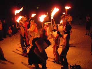 | 12月31日 今日は再び焼額山に滑りに出かける。今回は行きはバスで。着いた早々、T辺嫁が足の痛みを訴え、リタイア。今日は自分の体調は最高。焼額山の中級バーンをかっ飛ばす。しかし、やたらと荒れているため、スキーをとられてしまう。初日クラッシュした恐怖もあり、やや安全運転。 14時を過ぎたところで、初日とは逆に滑って丸池スキー場に戻ることにする。乗るリフトを間違えたり、途中に強烈なこぶ急斜面があったりいろいろあったが、なんとか帰り着く。そして最後はリフトが止まるまで丸池スキー場で最後の滑り。余談だが、丸池スキー場は初めてリフトが出来たスキー場だそうだ。 夕食を食べ、テレビを見る。大晦日といえばレコード大賞と紅白歌合戦。モーニング娘。狂いのI見さんとか鬼束ちひろ狂いのT野とかいてかしましい。自分はと言えば、「何でZONEが新人賞じゃないんだ!」とか「桑田がレコード大賞を取れなかったのは特定企業のCMソングだからか?」と独断的な意見を述べる。紅白は早々にその後は猪木ボンバイエを見る。なぜか生活スキー団の面々は格闘技が好きなようだ。異様に盛り上がる。高田戦や佐竹戦は超顰蹙でブーイングの嵐だったが。 猪木ボンバイエも紅白歌合戦も終わったところで、再びスキーウェアに身を包み、たいまつ滑走を見にスキー場へ出かける。 |