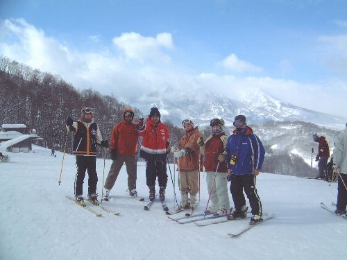 | 1月26日 ふと気付くと4時頃、「信じられん!TOKUが焼酎を飲んでる!」という声が聞こえたような気もするが、ふたたび眠りに落ちる。次に気付いて時計を見ると7時26分。7時26分?やばい、7時半から朝食だ!ということで4分で身支度を整え、朝食へ。メンバーの顔を見ると昨日まったりモードで過ごした2人を除き、皆疲れ顔。まぁ今シーズン初滑りの人が多い割に、昨日のプランはハードだったかもしれん。僕はなんともないのだが...と思っていたらM橋に「目が赤いけど、皆に泣かされた?」と聞かれた。あのなぁ... 8時半出発の予定だったが、相変わらず皆の動きが鈍く、9時出発に変更。S戸はリタイアし、ホテルでぐーたらするそうだ。 だからというわけでもないが、今日はいきなり山頂を目指し、クリスタルコースを滑った。と、これがとんでもない!滑る人が少ないせいか、あまり深いコブはないのだが、凄い急斜面で、非圧雪。人が少ないのと意外とコース幅があるせいで何とか滑り降りることが出来た。TOKU&K村はなんだかんだでショートスキーの特性を生かしてショートターンですいすいと降りていく...彼らに負けるとは... |
