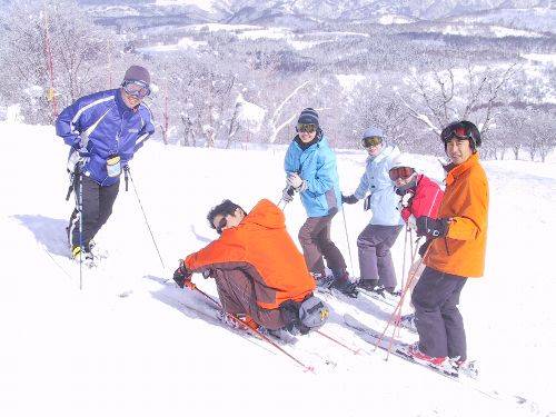 | その後、上部の緩斜面で前方にストックを突いて体をフォールラインに向けたままスキーを横にしてスピードを殺す滑り方を教えてもらい、練習。これでショートターンができるようになるのだとか。 そして、昨日と同じくチャレンジコースを滑った。この時点でだいぶ足にきていたので昼食タイム。中腹のレストランでコロッケカレーを食べたのだが、値段も味もまぁまぁだった(スキー場でこの評価はすごいといってよい)。さっきビールを飲んでいたはずの二人は食事もせずにまた生ビールを飲んでいる。「いや、生があったし」という訳のわからんセリフを吐いて... 昼食を食べて一休みしたものの、再度滑り出すと足が言うことをきかない。足を揃えようとしても板を持ち上げる力もなく、逆エッジを噛んでこけそうになった。14時ではあるが、ここでギブアップ。すでにスカイラインを滑る元気もないので、裾のコースを滑って柄沢エリアに戻った。 宿に戻って部屋の扉を開けると、団長がまだ布団で寝ていた。団長が起き出し、「あれ?早いねぇ」と言うので「滑りにいかんの?」と聞くと、「今から行くかな?何時?12時?」と言う。ちょっとずっこけて「2時!」と言うと、どうも滑りに行くのを諦めたようだ。団長嫁に電話をかけ、「O−TOが引き上げるというから一緒に撤収するから」と、滑りにも行っていないくせに人をだしにしてあたかも滑っていたようなことを言う。 まぁ時間があるので、今日は外湯巡りをすることにする。近い方から順番に4つほど外湯を巡ったが、どこも熱い!でもだんだんと体の疲れが取れてきたような気がする。途中で夜の宴会用飲み物を仕入れたり、肉まんを食べたりしてのんびりと温泉街を散策し、宿に戻った。 まったりタイムを過ごしていると、17時も近くになってI見とI橋が帰ってきた。相変わらずタフな連中だ。 今日の夕食も美味であり、量も満足。鍋まであったし。 夜の飲み会は何か訳わからん状態。モー娘。の話題だったり、各自の好きなアーティストの話だったり。女性陣は皆猿系好みということが判明したが。 |
