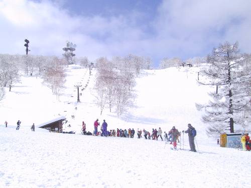 | 3月22日 朝7時半起床で、7時半朝食。団長は朝からパンを山盛り食している。いつものことだが...太股や膝ががくがくしている。うーむ、これはやばい。滑れないかも?皆も体が痛いと言っている。しかし、I見とI橋はさすがにさっさと支度をしてこちらを急き立てる。が、団長は腰が痛いと言ってそのまま布団に潜り込んでしまった。女性陣はもう少しゆっくりして出発するそうで、自分、I見、I橋の3人で出発。まずは山頂を目指す。 ゴンドラに乗って山頂を目指そうとしたのだが、なんじゃありゃ?ゴンドラ待ちの列が建物を一周している。昨日の4倍くらい並んでいるぞ?並ぶのが嫌いな田舎者としてはのんびりと並んでられないので、リフトを乗り継いで山頂を目指した。こちらの方は全然空いていたのだが。 それでもさすがに山頂付近はなだらかで雪質も良いためか、人が多い。特に袋小路になっているリフト乗り場は凄い人。でもぢつは裏に回ってクワッドに乗るコースは人も少なく、リフト待ちもほとんどなく穴場であった。ここをしばらく滑った後、I見とI橋はガソリンが切れたと言って、コースの脇に座り込んでビールを飲み始めた。このビールは「ヨメヨメエール」もとい「ヨナヨナエール」と言う地ビールで、飲んべえのI橋ご推奨の銘柄。昨年秋の合宿で見つけて以来、通信販売で1〜2ケース/月のペースで購入しているとのこと。一番絞りやドライに慣れている人からするとかなり苦く感じるかも? で、酒を飲まない自分は暇なのでとりあえず1周してくることにした。朝と言えどもやはり今日も暖かく、既に雪は重たくなってきていた。昨日の疲れで足の踏ん張りが効かなくなっているが、なんとか滑り降りる。この1周の間にクラッシュを二度目撃してしまった。より一層スピードを抑えにかかってしまったため、余計に疲れてしまった。 |