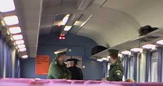 画像は、国境近くで停車した時に国境警備の人?達が乗り込んできたときの風景です。 国境と言っても特に何されるわけでも無く、パスポートを見ておしまいでした。(出入国のはんこも押されず、これでいいのか?と悩んだほどです) 車窓の風景は、のんびりした田園風景が多く、あまりにも暇な妻が列車の中を探検しに行き、カップのアイスクリームを抱えて帰ってきました。「店員さんが言うには、サクランボにアイスがうまいよ」と言ったから・・・と買ってきたそうです。一口ねだるのに苦労しましたが、甘酸っぱくて美味しかったです。 それ以外、することも無く早くフランクフルトに着かないかと・・・ずーと考えていました。横では、妻が気持ちよさそうに寝ていました。・・・外国の列車にめったに乗れないため、興奮していた僕は寝れず(寝るのが惜しい!)、興奮していない妻がこのときほどうらやましいと思ったことは無かったです。 |