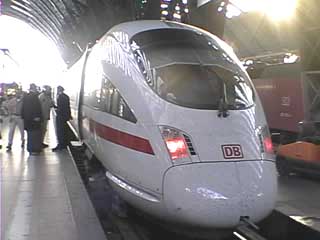 フランクフルト駅に停車していた、ICE−T(ドイツの新幹線です) 後に乗ることになりますが、スケジュールの関係で乗車時間20分!しか乗れなかった。実を言うとこの20分の乗車もなんとか捻出した努力の賜物です!!! (その為に乗換えばかりとなり妻には不好評でしたが・・・) |