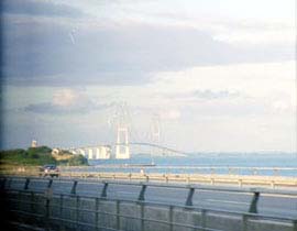 この列車はストアベルト海峡をトンネルと長大橋で渡るルートを通るので楽しみにしていました。 海峡を橋で渡っている時には瀬戸大橋を渡っているような感じでなんか日本に帰ったようでした。 (ってことはこの列車はサンライズ瀬戸号ってことになるのかなぁ?) 海峡を渡ってほどなくしてオーデンセに到着。ここはアンデルセンの生まれた町です。 時間は9時近く。日が長い北欧もそろそろ周りが暗くなった。 寝る前に食事をしに食堂車に行く。食堂車の雰囲気は星空バーのような感じでいい雰囲気だった。 メニューを見てもhot mealとかcold mealとか書いててよーわからんので適当にオーダーするとチーズが出てきた。 おいしかった。 食後、列車の揺れに任せながら寝入りました・・・・(じつは興奮状態で何度起きた事か(笑)) |