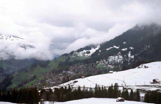 今日は登山電車に乗ってユングフラウ観光です。 インターラーケン オスト駅からBOB鉄道に乗り、グリンデルワルトに行きます。 車窓の景色は緑の草原から次第に雪を覆ったアイガーが見えたかと思うと雪景色に変わっていきました。 |