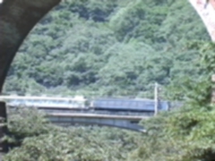 アーチ橋であさまや普通電車を撮影する。再び横川へ向けて歩き出す。あと5km。峠を下り、郷に出たら、影のない灼熱地獄だった。やっとの思いで横川についた時は、もうへとへとだった。ペットボトル1本を一気に飲み干す。