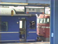 リニアの実験線が見えてくると、終着は近い。高架駅に生まれ変わった宮崎駅に13:27到着する。向かいの1番線では、これから東京へ向かう上り富士が発車を待っている。