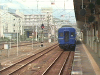 大淀川を渡ると、終着南宮崎だ。13:31定刻到着。鉄道ファン数人が降り立つ。 |